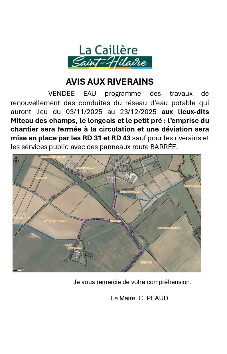 đŁ AVIS AUX RIVERAINS - MITEAU LES CHAMPS / LE LONGEAIS / LE PETIT PRĂ