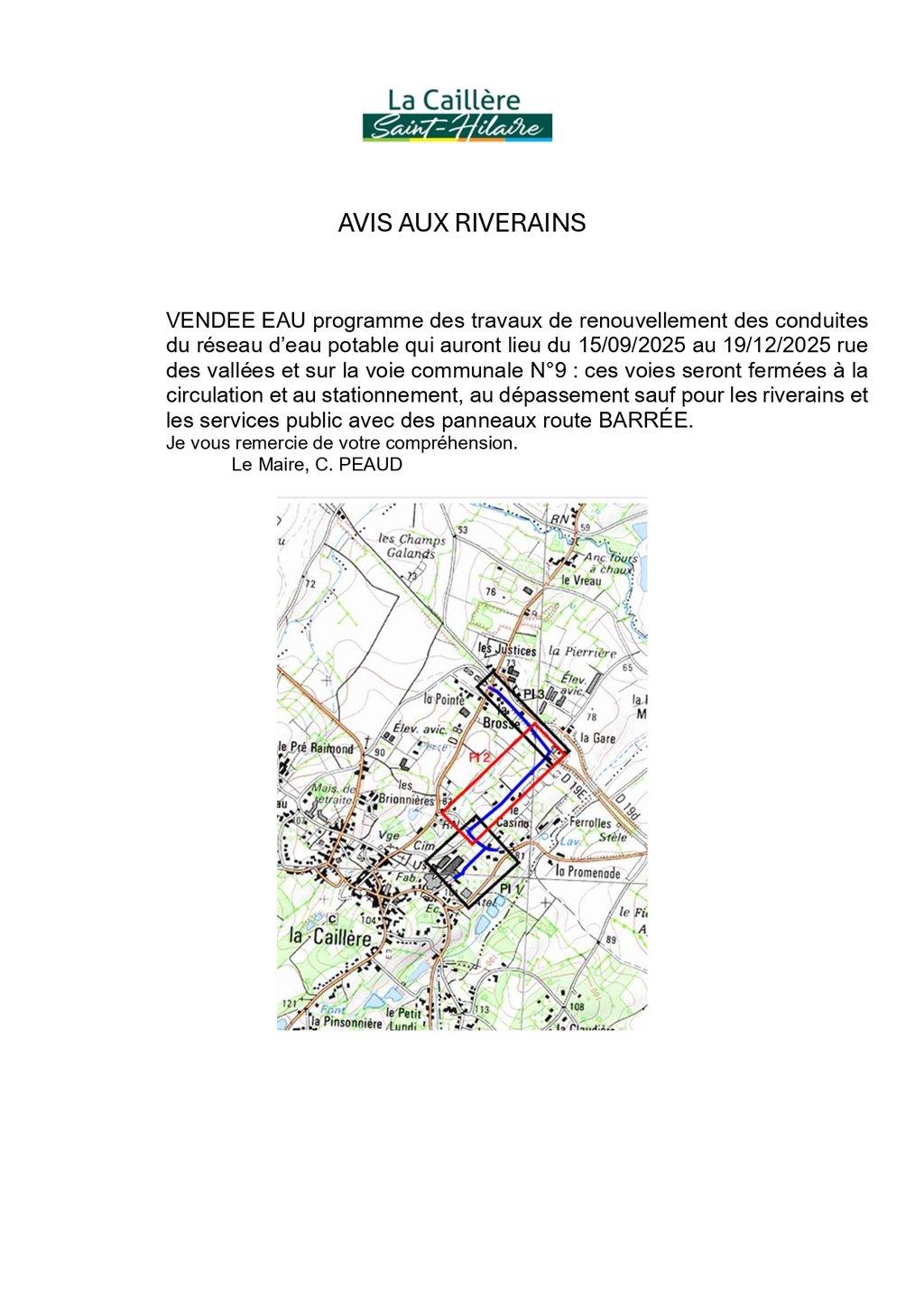 AVIS AUX RIVERAINS - RUE DES VALLĂES đŁ