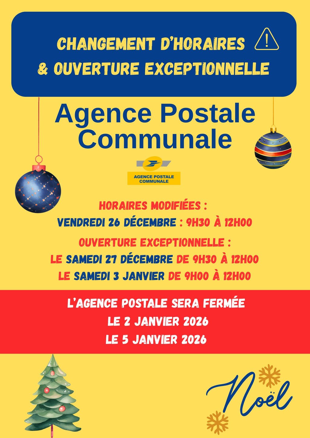 OUVERTURE/FERMETURE AGENCE POSTALE âšđ đ»đ