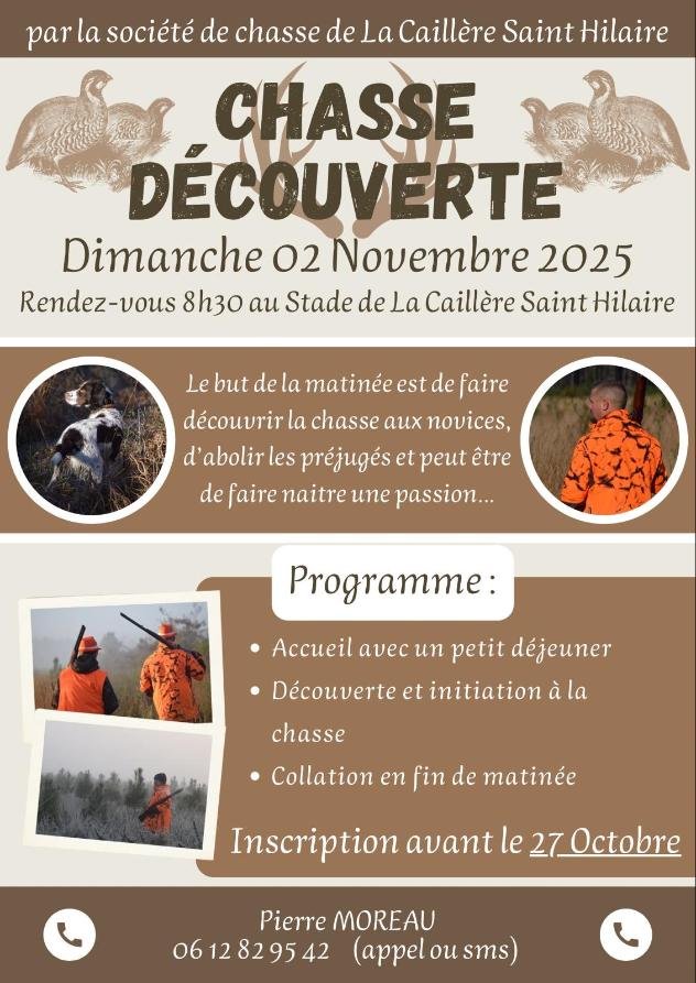đ OrganisĂ©e par la SociĂ©tĂ© de Chasse de La CaillĂšre Saint Hilaire