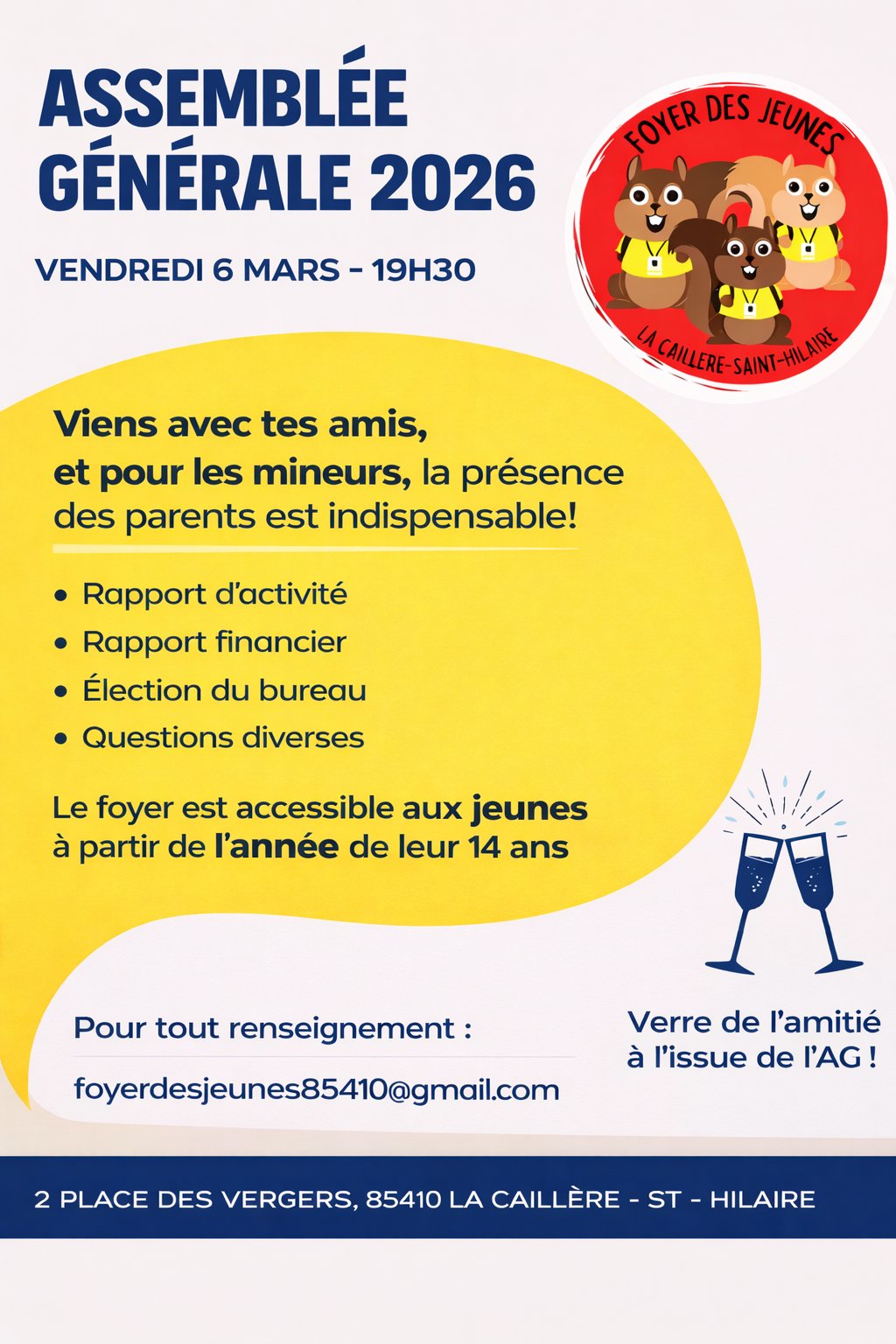 đđ»đđ» Le Foyer des Jeunes de La CaillĂšre-Saint-Hilaire organise son AssemblĂ©e GĂ©nĂ©rale :