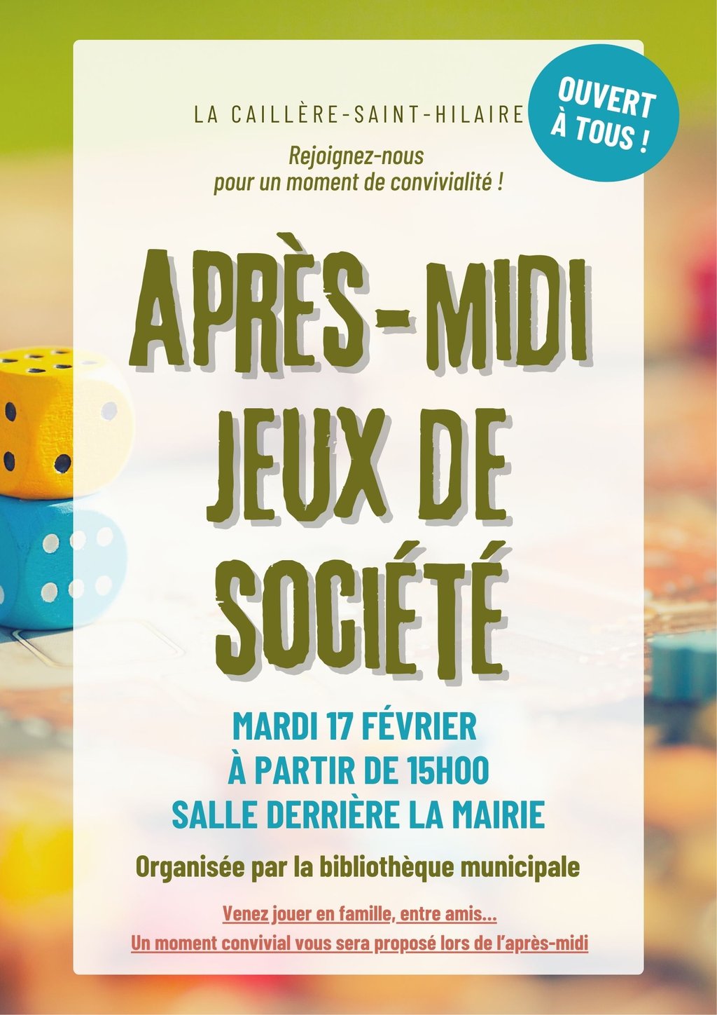 La bibliothèque sera exceptionnellement fermée mardi 17 février en raison de l'après-midi jeux de société