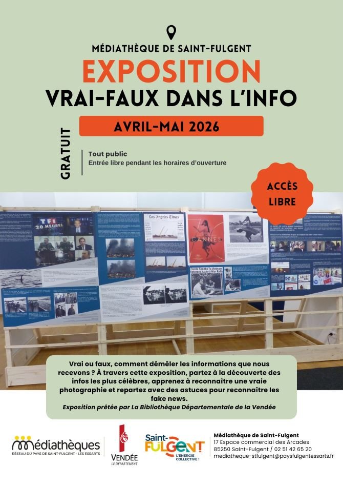 Durant les mois d’avril et mai, la médiathèque accueille l’exposition « Vrai-Faux dans l’info » dans le cadre d’un temps fort sur l’information à l’ère du numérique..