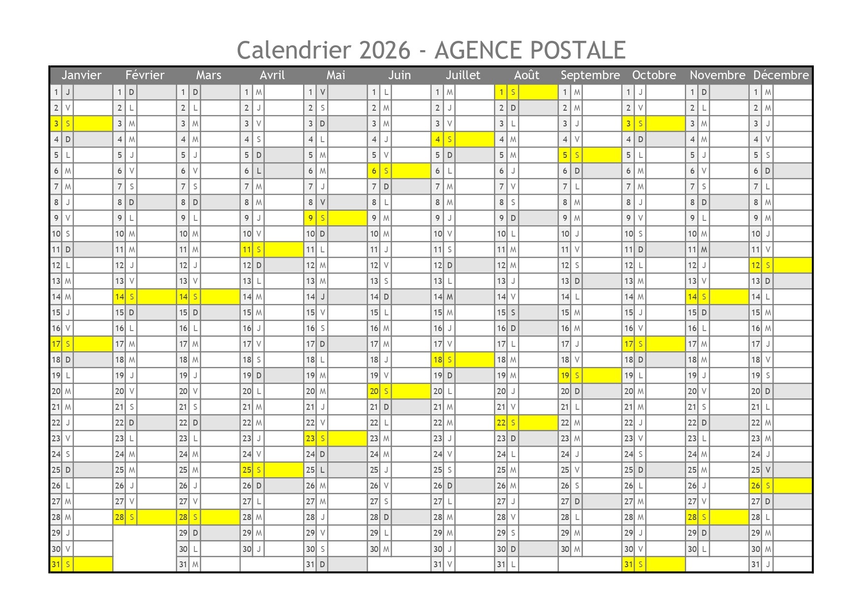 Les horaires de l'Agence Postale Communale sont les suivants :